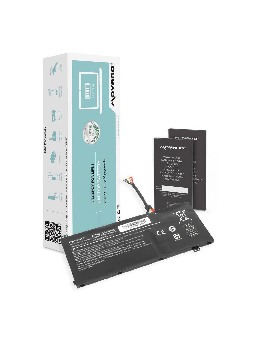 Nowa bateria z certyfikatem jakości CE, ROHS. Ogniwa litowo-polymerowe firmy Zhuoneng. Bateria wyposażona jest w zabezpieczenie chroniące ją przed: przepięciem, przegrzaniem, zwarciem, przeciążeniem prądowym, głębokim rozładowaniem oraz przeładowaniem.