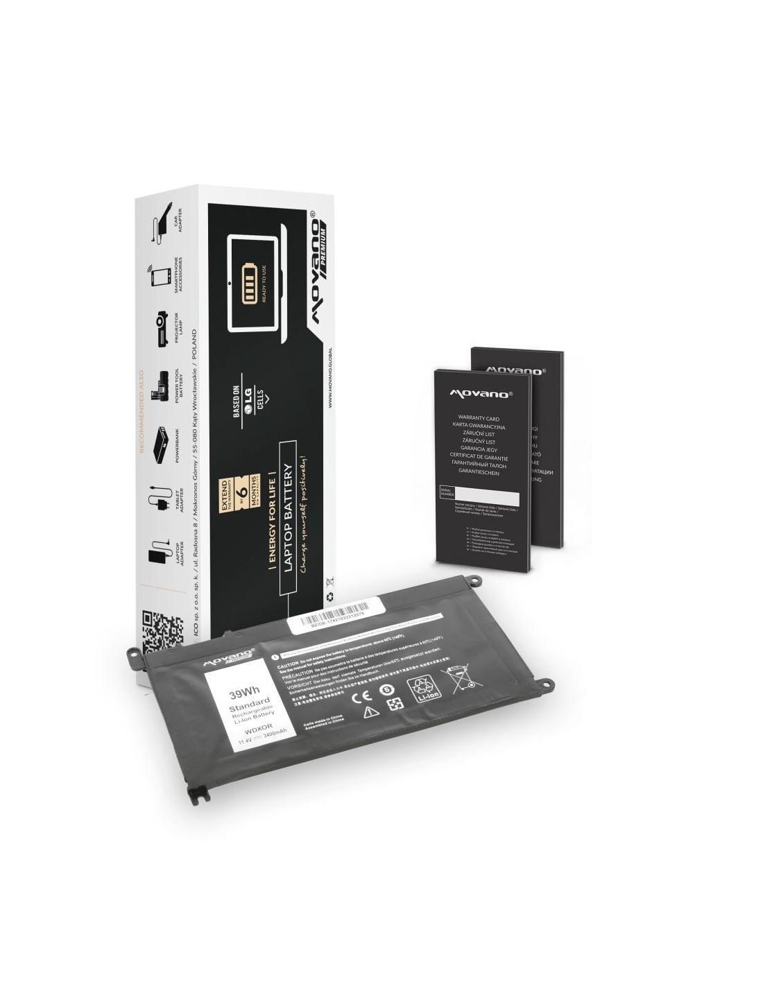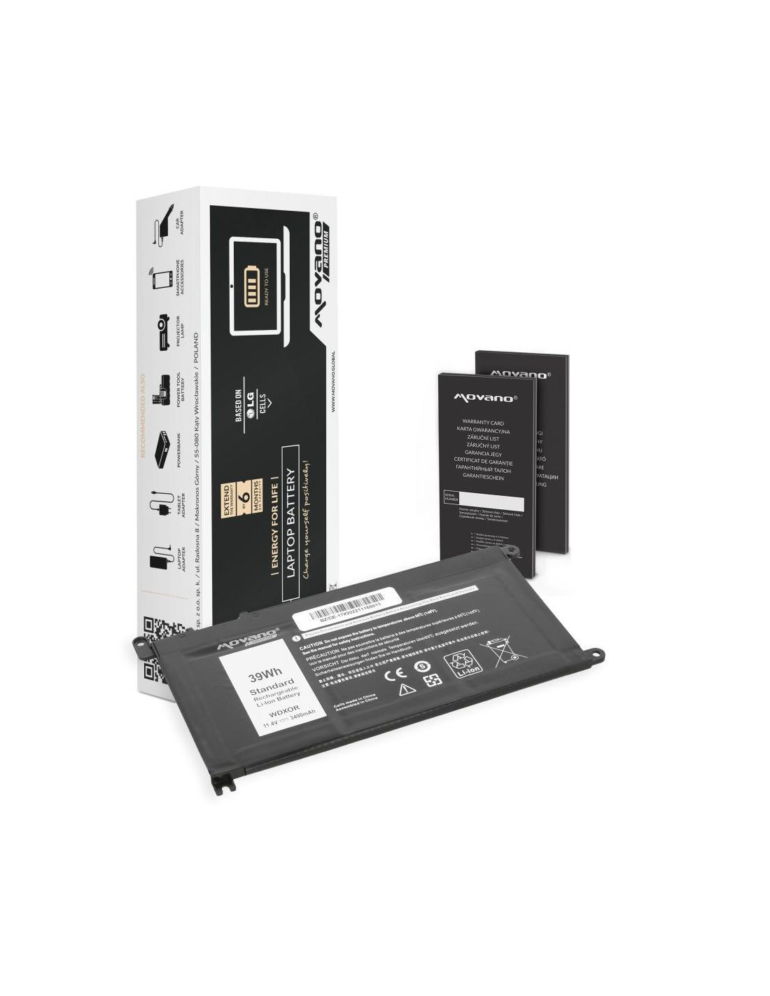 Nowa bateria firmy Movano z certyfikatem jakości CE, ROHS. Akumulator wyprodukowany w oparciu o ogniwa litowo-polymerowe klasy A+ marki LG używane przez czołowych producentów oryginalnych baterii do laptopów. Bateria wyposażona jest w zabezpieczenie chroniące ją przed: przepięciem, przegrzaniem, zwarciem, przeciążeniem prądowym, głębokim rozładowaniem oraz przeładowaniem.