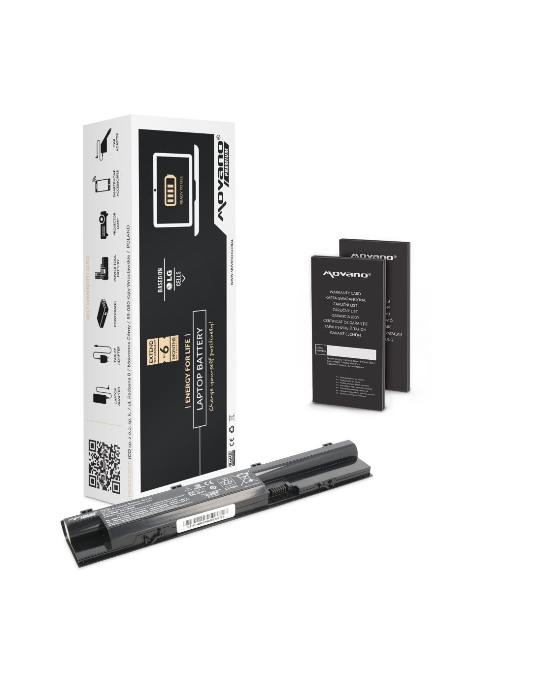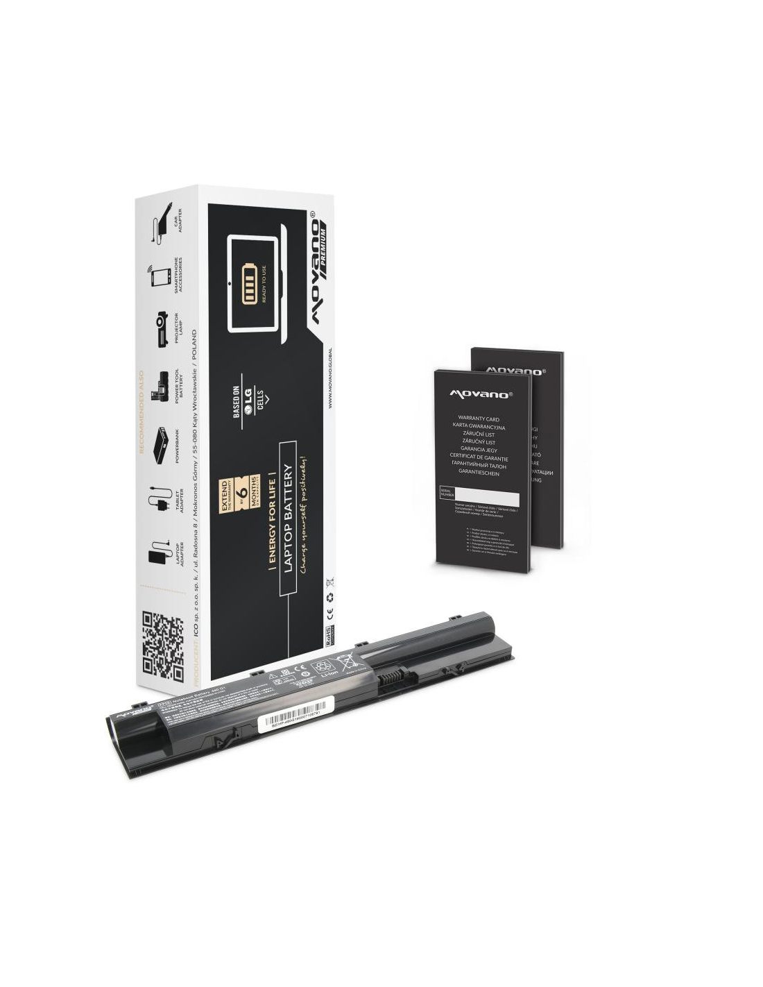 Nowa bateria firmy Movano z certyfikatem jakości CE, ROHS. Akumulator wyprodukowany w oparciu o ogniwa litowo-jonowe klasy A+ marki Samsung używane przez czołowych producentów oryginalnych baterii do laptopów. Bateria wyposażona jest w zabezpieczenie chroniące ją przed: przepięciem, przegrzaniem, zwarciem, przeciążeniem prądowym, głębokim rozładowaniem oraz przeładowaniem.