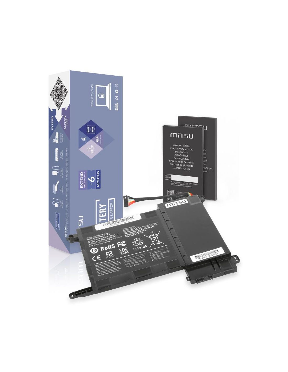 Wysoka jakość w rozsądnej cenie, bezpieczeństwo i ekologia to cechy baterii MITSU, które doceniły już tysiące Europejczyków, głównie w Polsce, Czechach i na Słowacji. Jest ona efektem połączenia najlepszych komponentów z dbałością o każdy etap procesu produkcji, wspartą nieustanną kontrolą jakości, a także naciskiem na bezpieczeństwo urządzenia. MITSU to• wysokiej klasy, sprawdzone, ekologiczne ogniwa litowo-jonowe klasy A,• rzeczywista deklarowana pojemność,• znacznie wolniejszy spadek nominalnej pojemności w porównaniu do innych tańszych zamienników,• niska podatność na samoistne rozładowania,• brak efektu pamięci,• fabryczne zabezpieczenia przed przeładowaniem i głębokim rozładowaniem, a także przed przepięciem OVP, przegrzaniem OTP, zwarciem SCP i przeciążeniem prądowym OCP,• niezawodny i długotrwały czas między kolejnymi cyklami ładowania,• 6-stopniowa kontrola jakości. Kupując ten akumulator do laptopa masz także pewność, że jednocześnie dbasz o środowisko naturalne. Producent ściśle współpracuje z organizacjami zajmującymi się szeroko pojętą edukacją ekologiczną, wspierającymi selektywną zbiórkę oraz maksymalny odzysk odpadów. Baterie MITSU to produkty opatrzone certyfikatami CE, ROHS oraz ISO9001.