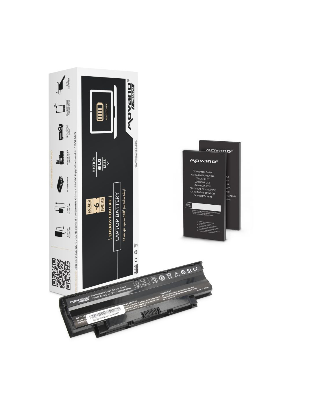 Movano z certyfikatem jakości CE, ROHS. Akumulator wyprodukowany w oparciu o ogniwa litowo-jonowe klasy A+ marki Samsung używane przez czołowych producentów oryginalnych baterii do laptopów. Bateria wyposażona jest w zabezpieczenie chroniące ją przed: przepięciem, przegrzaniem, zwarciem, przeciążeniem prądowym, głębokim rozładowaniem oraz przeładowaniem.