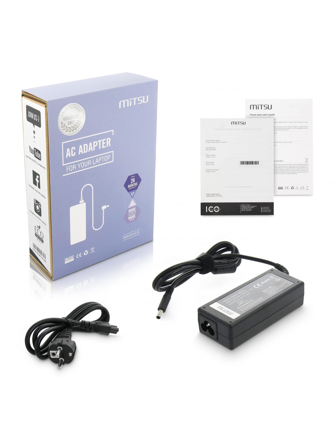 Nowy zasilacz do laptopa Acer marki Mitsu wyposażony został w filtr ferrytowy oraz w doskonałe zabezpieczenia chroniące przed przepięciem, przegrzaniem, przeciążeniem i przeładowaniem. Ładowarki do laptopów Acer skierowane są do najbardziej wymagających użytkowników, ceniących sobie bezstresową i komfortową pracę. O jakości produktu świadczą uzyskane certyfikaty: CE, ROHS, FCC oraz ścisła kontrola jakości eliminująca powstanie ewentualnych defektów.