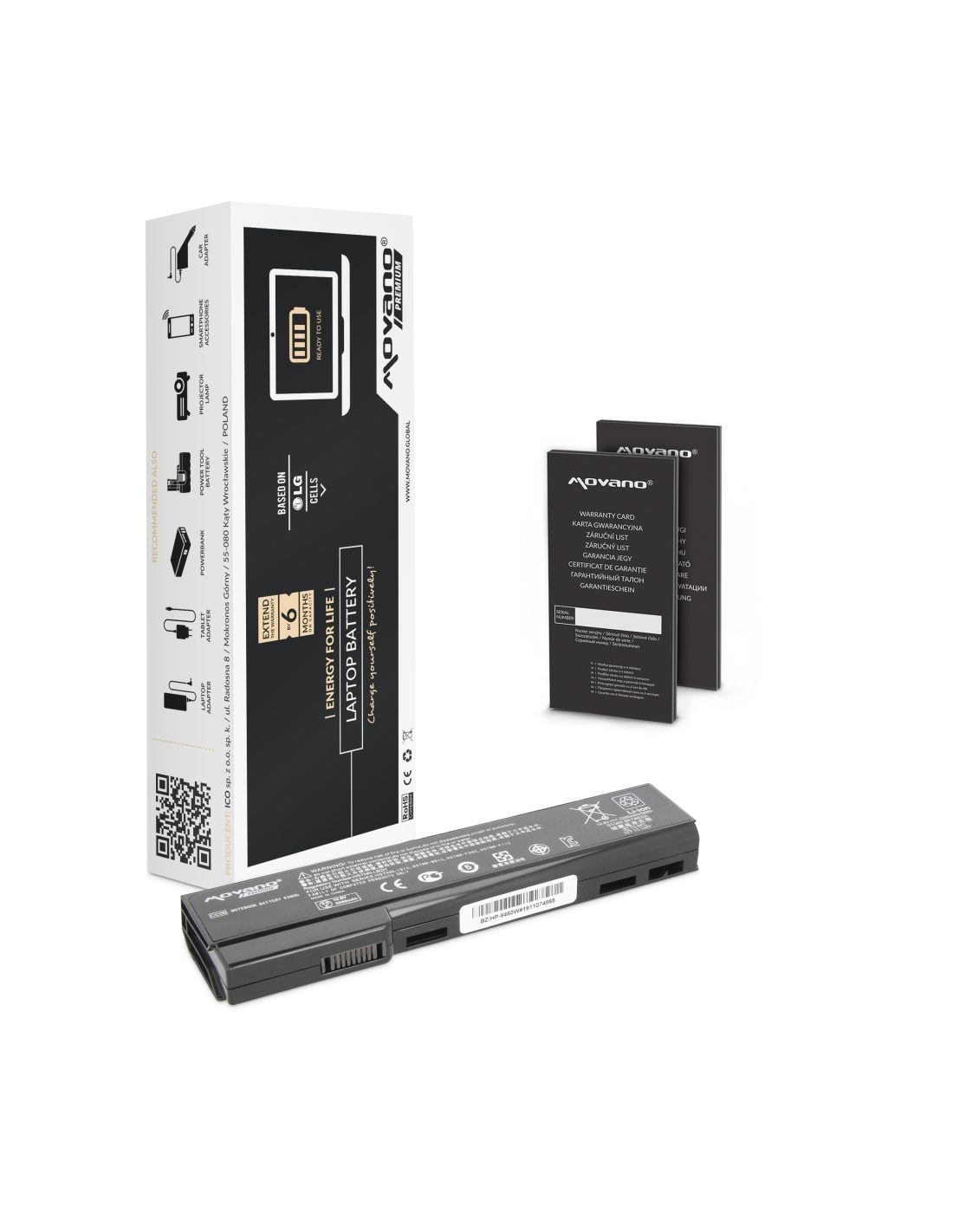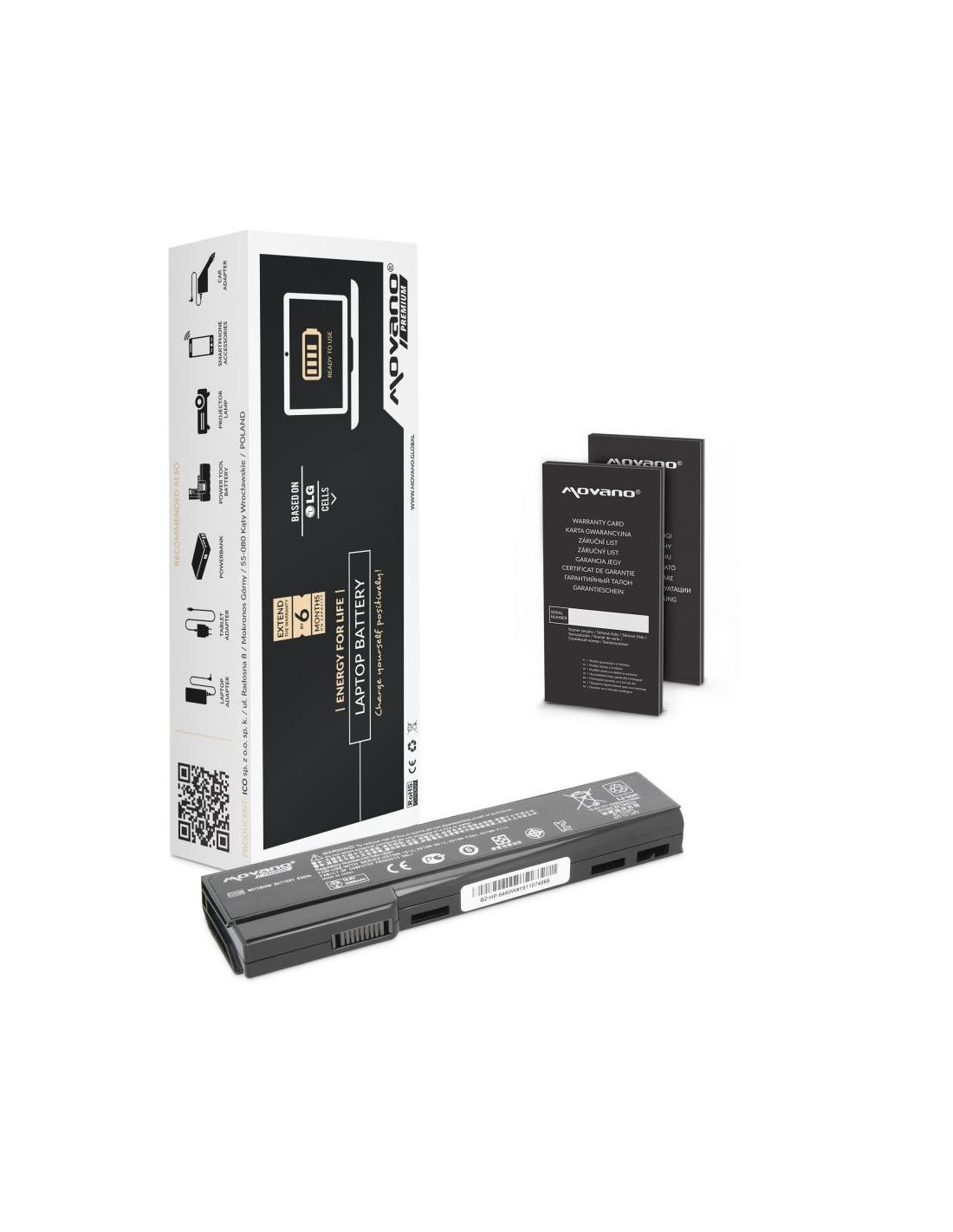 Movano z certyfikatem jakości CE, ROHS. Akumulator wyprodukowany w oparciu o ogniwa litowo-jonowe klasy A+ marki LG używane przez czołowych producentów oryginalnych baterii do laptopów. Bateria wyposażona jest w zabezpieczenie chroniące ją przed: przepięciem, przegrzaniem, zwarciem, przeciążeniem prądowym, głębokim rozładowaniem oraz przeładowaniem.
