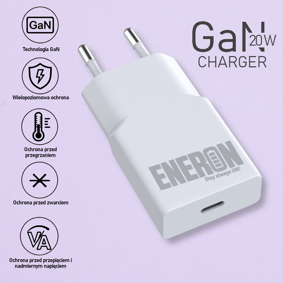 Kompaktowa ładowarka Eneron o mocy 20W, która sama dostosowuje moc dla obsługiwanego urządzenia. Nie musisz obawiać się uszkodzenia Twojego sprzętu tablet czy smartfon.