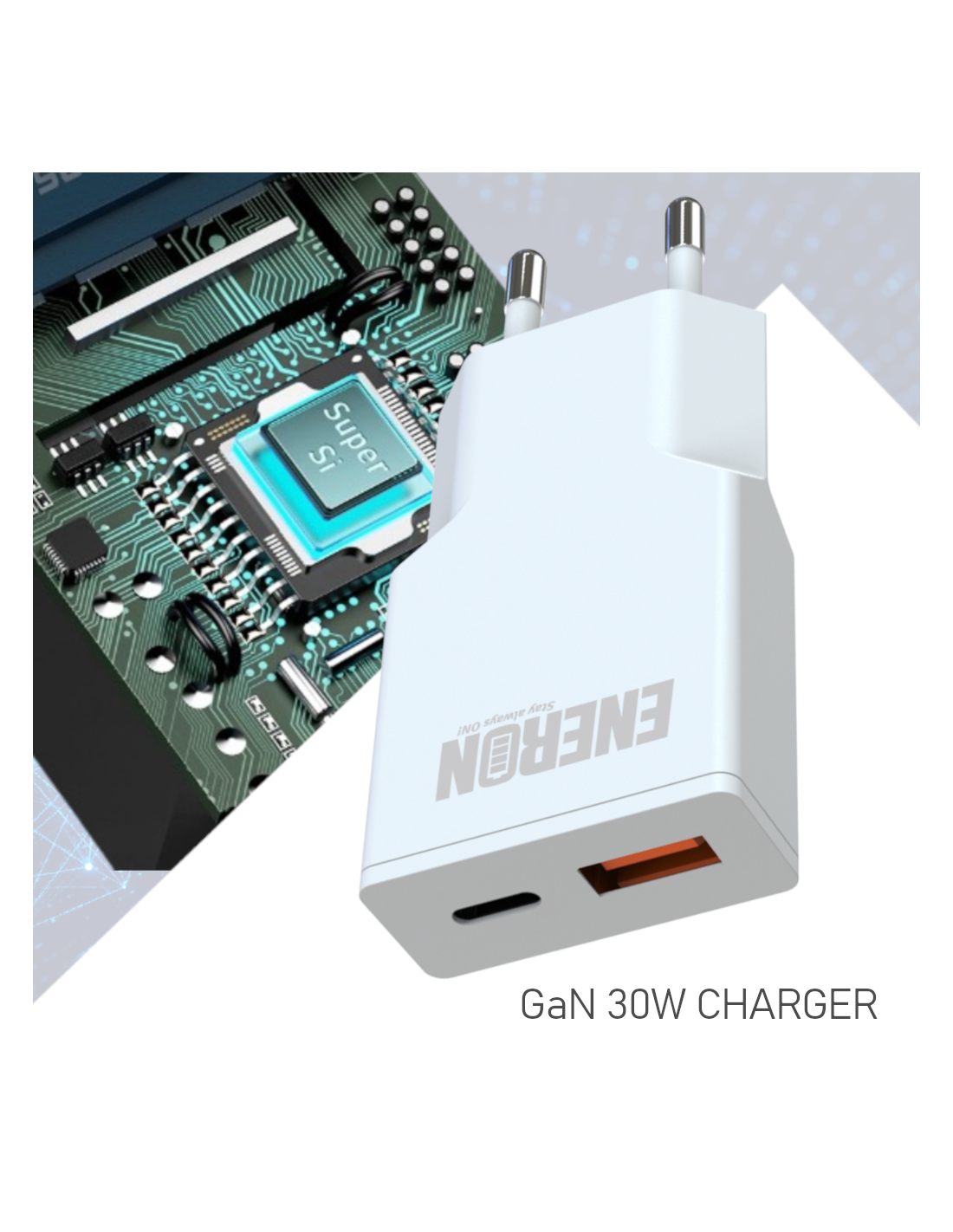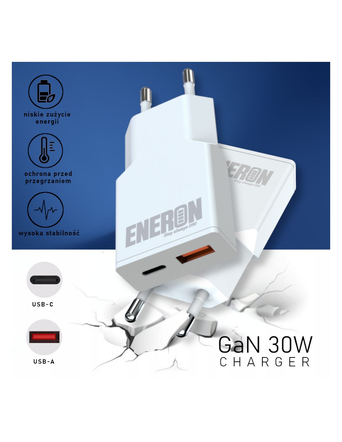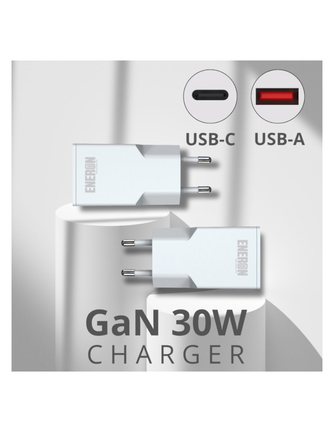 Kompaktowa ładowarka Eneron o mocy 30W, która sama dostosowuje moc dla obsługiwanego urządzenia. Nie musisz obawiać się uszkodzenia Twojego smartfona.