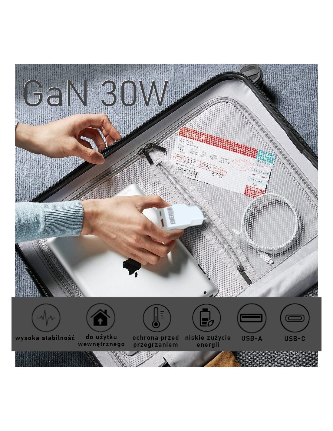 Ładowarka GaN Technology 30W SLIM USB-C USB-A Biała