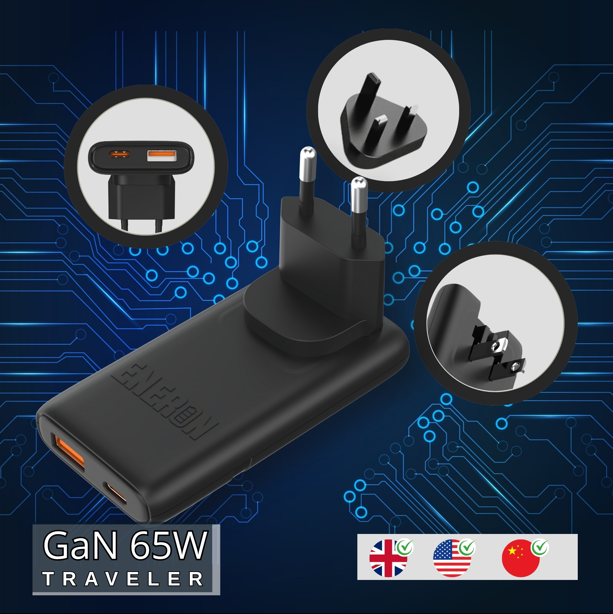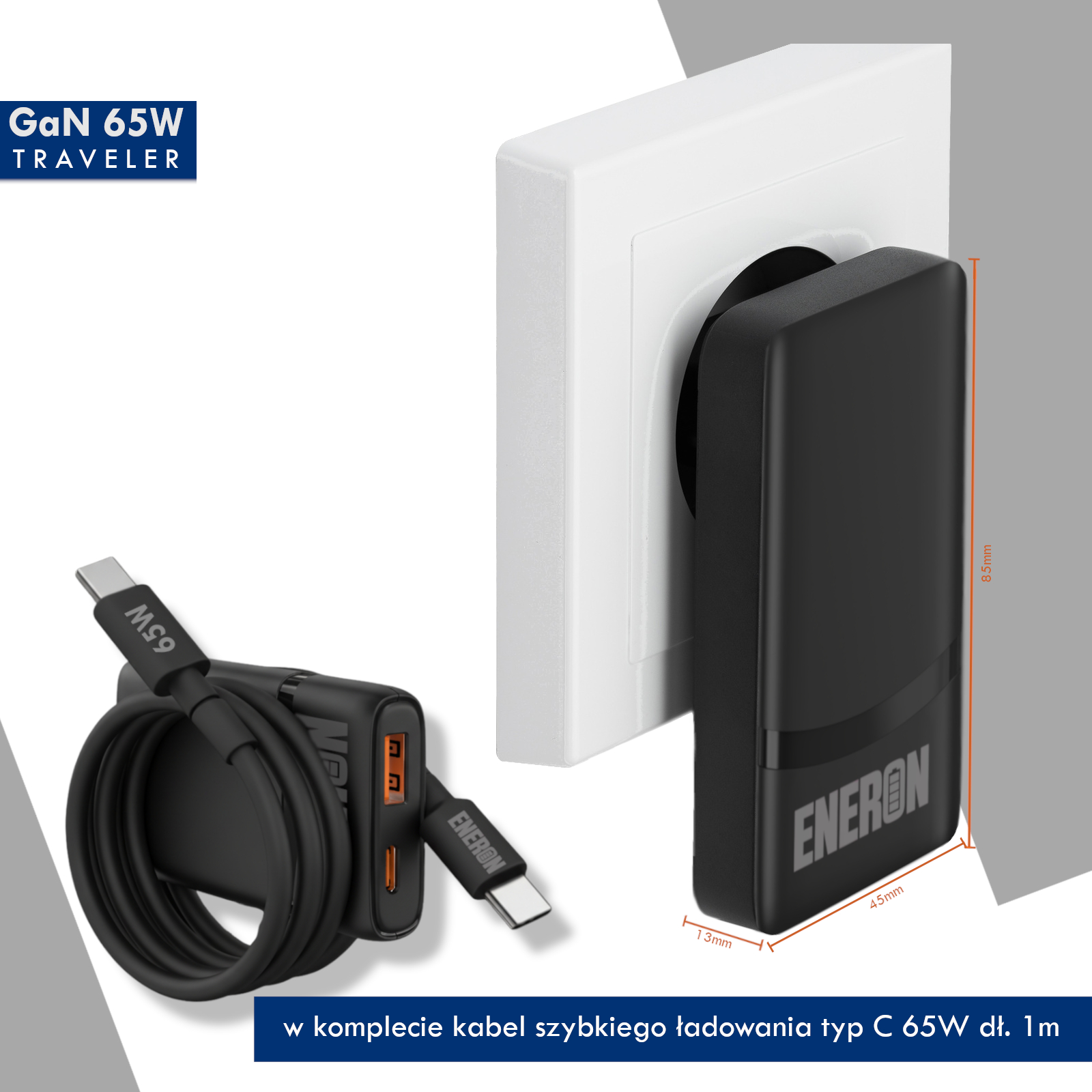 ŁADOWARKA ENERON GaN 65W TRAVEL
