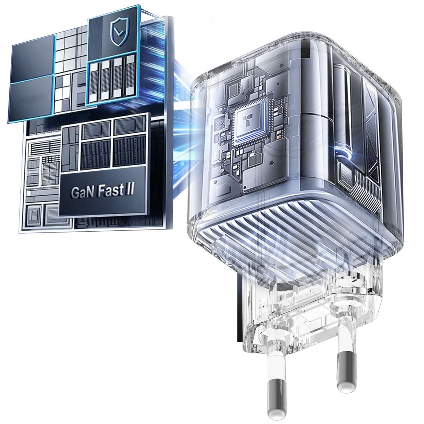Najmniejsza na świecie kompaktowa ładowarka 65W, która sama dostosowuje moc dla obsługiwanego urządzenia. Nie musisz obawiać się uszkodzenia Twojego sprzętu, możesz bezpiecznie naładować laptop, tablet czy smartfon.
