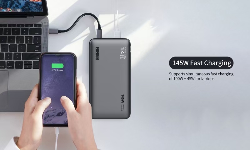 ✅ Zapewnij sobie niezawodne źródło zasilania w podróży dzięki naszemu nowoczesnemu powerbankowi o imponującej mocy 145W oraz pojemności 25000mAh.