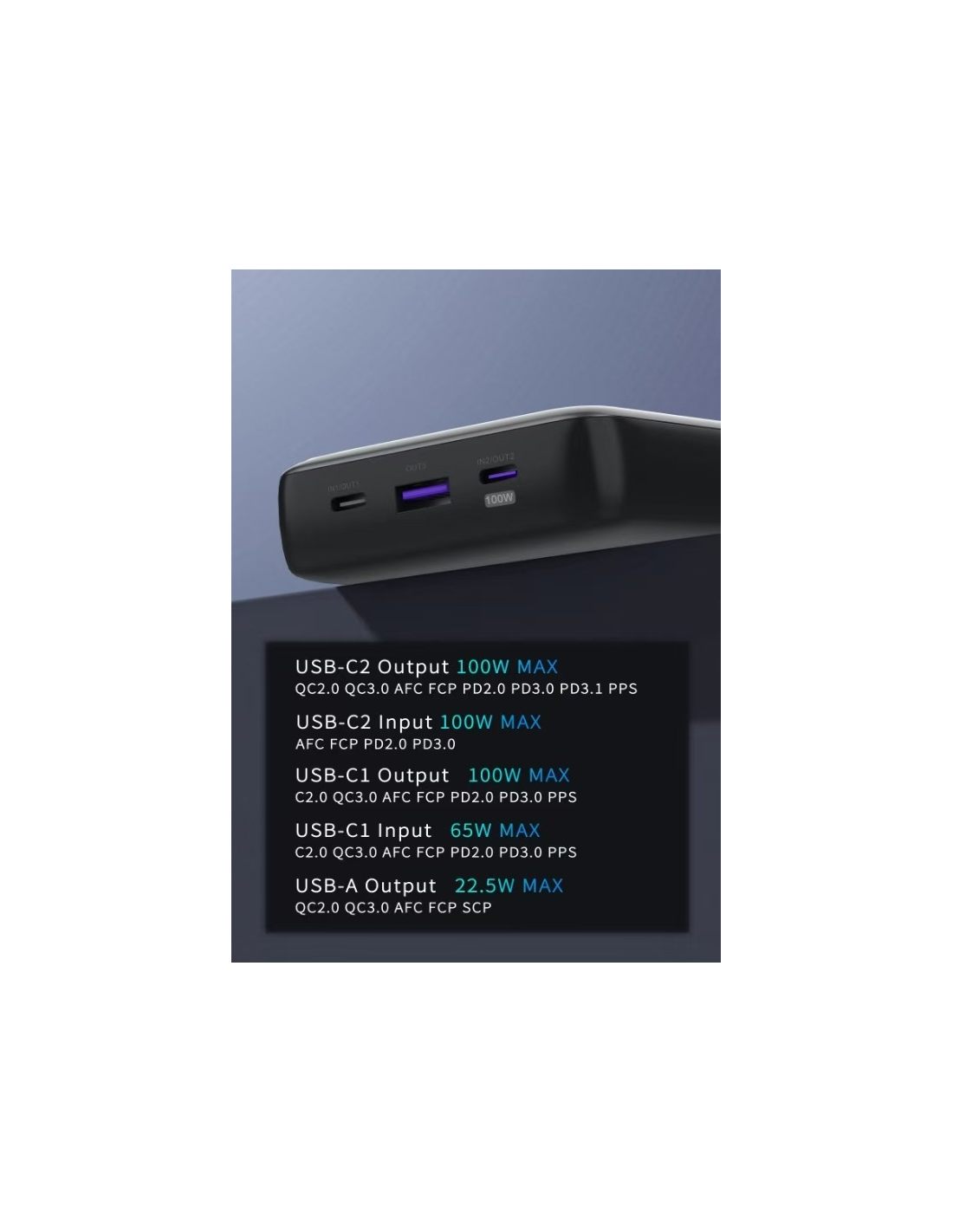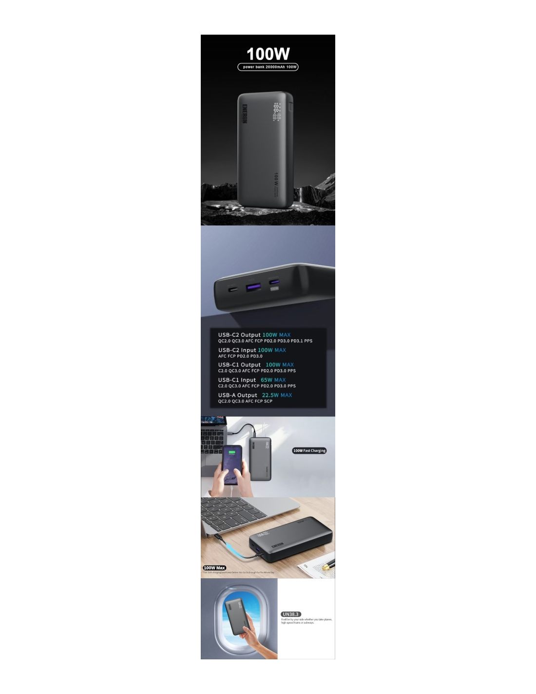 ✅ Zapewnij sobie niezawodne źródło zasilania w podróży dzięki naszemu nowoczesnemu powerbankowi o imponującej mocy 100W oraz pojemności 20000mAh.