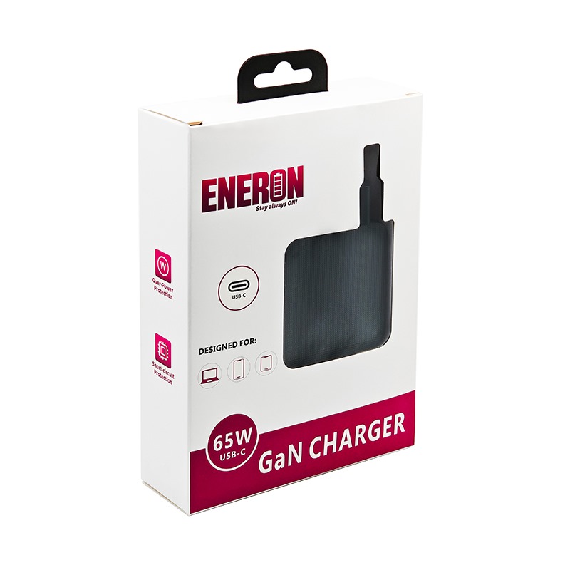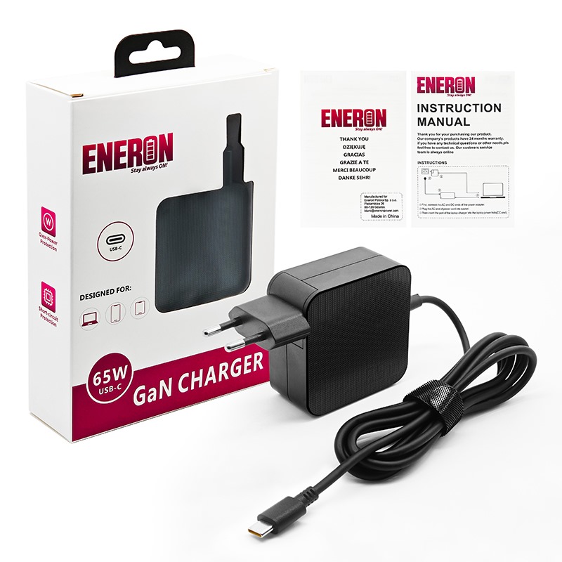 Ładowarka Eneron o mocy 65W, która sama dostosowuje moc dla obsługiwanego urządzenia. Nie musisz obawiać się uszkodzenia Twojego sprzętu, możesz bezpiecznie naładować laptop, tablet czy smartfon.